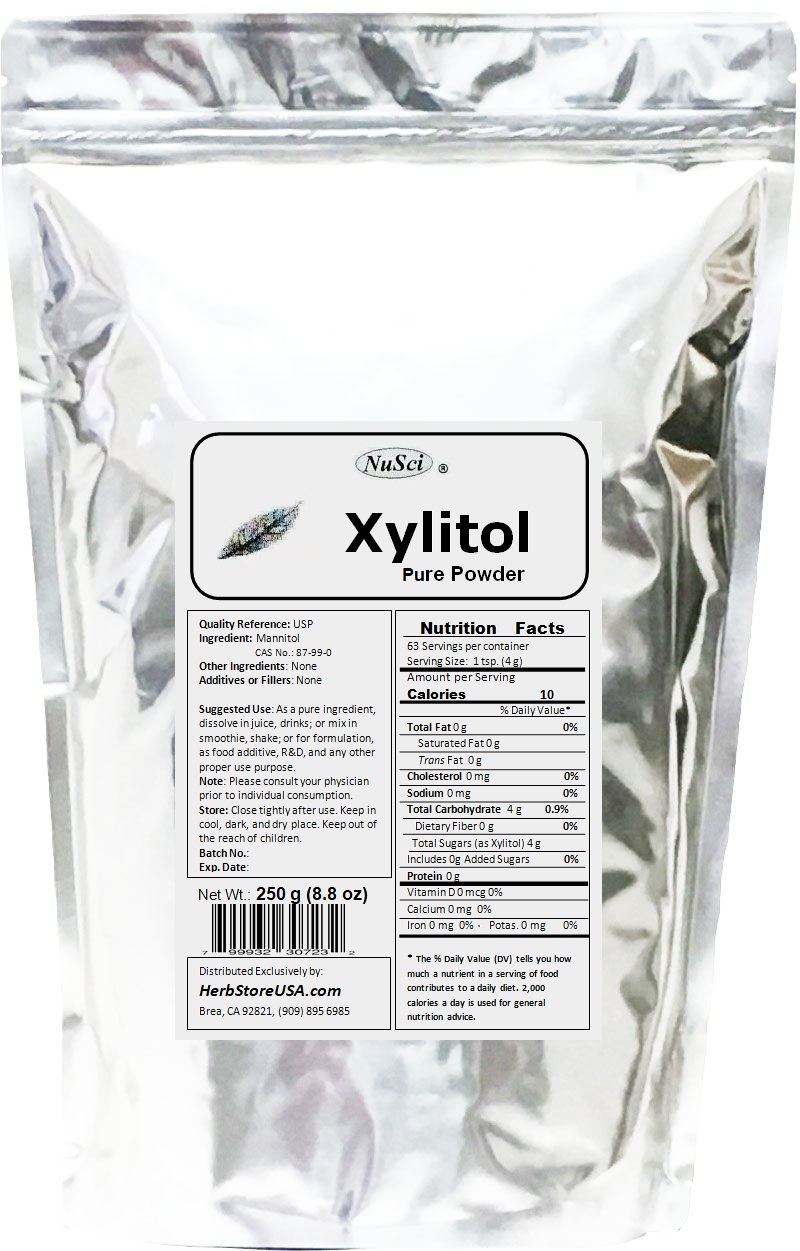 Xylitol Pure Powder 250g | 8.8 ozProduct DescriptionThis Itemis 250 grams (8.8 oz) Xylitol Pure Powder which complies with U.S. Pharmacopeia (USP) quality standard. There is not any additive or filler inside. Assayed > 99% with titration. It is new and fresh. There are 1~1.5 years shelf life availableAppearance: White crystalline powder. Taste: Sweet with cool feeling. Solubility: Soluble in water. Store in cool and dry place, keep away from strong light and heat. This Xylitol powder is good for consumption, formulation, R&D (research and development), or any other proper purpose. Generally Suggested Use: Take 1 teaspoon (about 4 grams) to 3 teaspoon (about 12 grams) in food or beverage as a substitute of sugar. Daily Value not established. Or do your own research for dosage and your usage purpose. Xylitol is a low-calorie carbohydrate, may support healthy blood/glucose level, and benefit to dental health. Xylitol is a sugar alcohol that is naturally present in small amounts of various fruits and vegetables. It was discovered simultaneously by French and German chemists in 1891. This Xylitol is derived from a corn cob. Our body produces lots of Xylitol every day as a result of normal metabolic processes. Although it is classified as a carbohydrate, this sweet crystalline substance is slowly absorbed from the digestive tract and does not cause rapid rises in blood glucose, thus it helps support healthy blood/glucose levels. Xylitol is a low calorie carbohydrate (about 40% lower than sugar), making it a healthy additive to any diet. Xylitol has been safely used since the 1970's as an ingredient in gums and candies. Since the bacteria in month can not make use of xylitol, does not like sugar, xylitol does not promote tooth decay. Dentists and nutritionists encourage the use of Xylitol due to its unique and clinically proven dental benefits. Safety Warning: Xylitol is Dangerous to Dogs. |